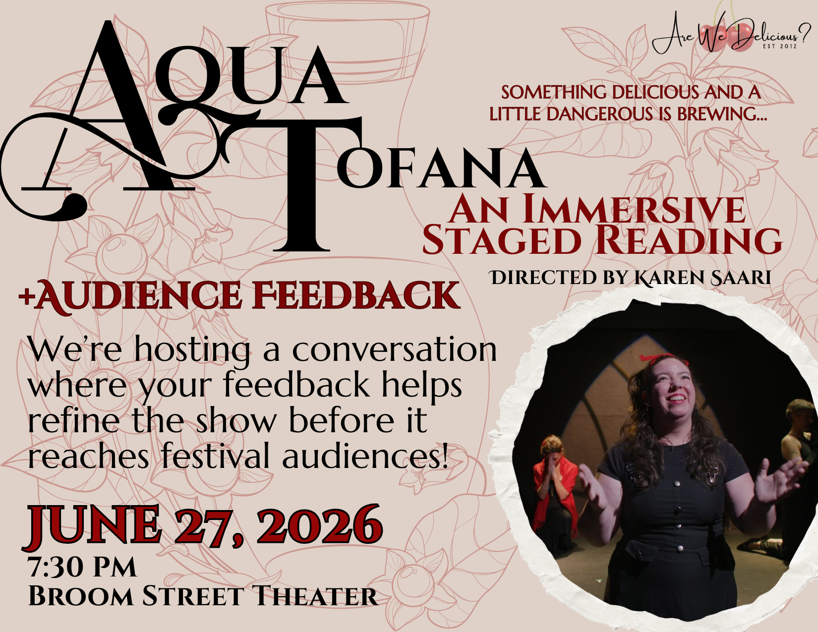 The brainchild of Madison-based actor, director, and producer Tony Trout, Are We Delicious? reflects his deep love for ensemble storytelling and bold theatrical risk-taking. In April 2023, Tony passed the creative reins to long-time Delicious veterans Stacey Garbarski and Gina M. Gómez, who now lead the company with the same fearless spirit and commitment to boundary-pushing creativity.